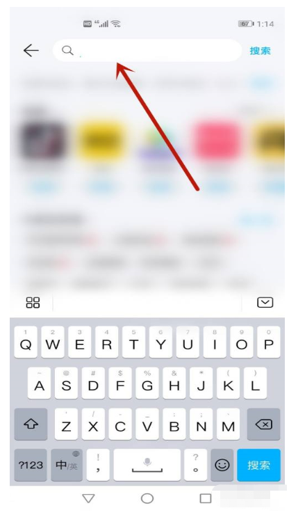 1、打开手机上的自带应用市场(或者在浏览器搜索),点击搜索框。