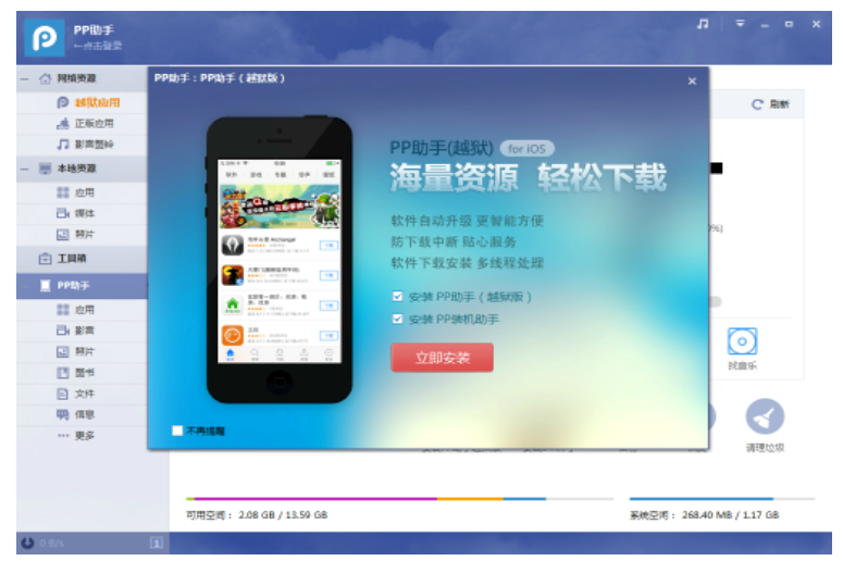 PP助手(Win),全新适配IOS8,iPhone6、iPhone6 Plus壁纸任选,同时也是时下最适配iOS7/iOS6.X越狱与不越狱设备的苹果助手,已完美适配iphone6、iphone6 Plus以及iPhone/iTouch/iPad,实现真正扁平化风格。