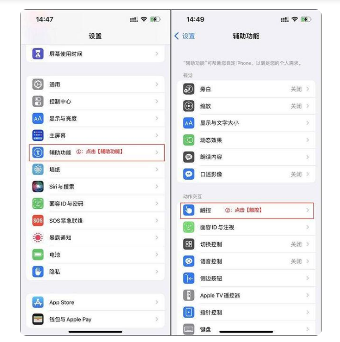 1、打开手机中的“设置”后往下找到“辅助功能”然后点击“触控”;