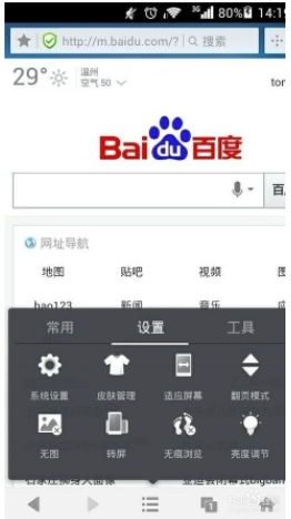 1、首先打开手机上的UC浏览器,点击中间的菜单栏进入菜单选项。