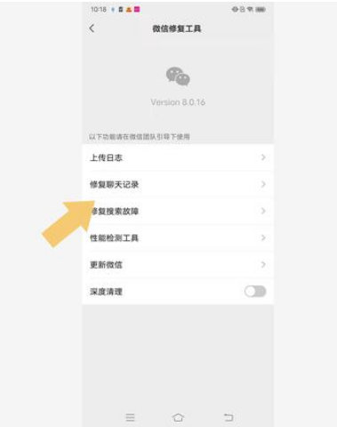 5、找到“修复聊天记录”选项。