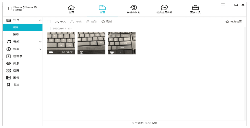 如果您觉得上述方法操作较为复杂或者不能让您选择您需要的视频进行传输,小编向您推荐另一款软件牛学长苹果数据管理工具 。此工具操作简单,最重要的是它可以有选择进行导入,支持视频、照片、音乐、联系人、App等数据传输。传输速度非常快,以下是详细的操作指南: