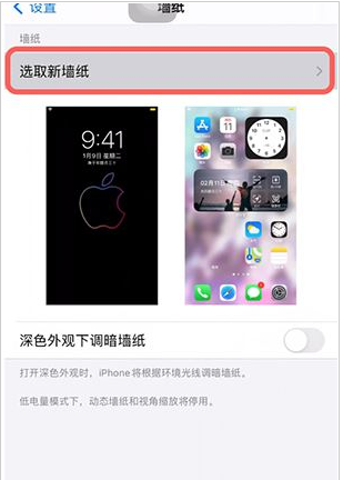 2、点击选取新墙纸,更换手机桌面或锁屏壁纸;