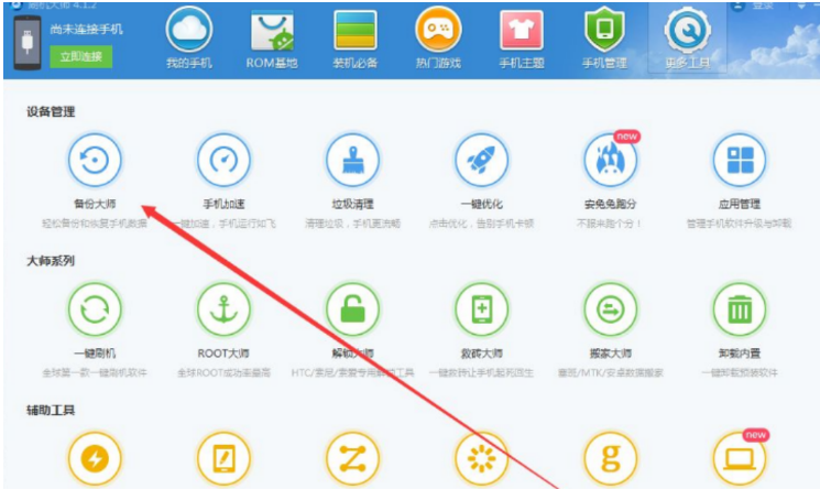1、打开刷机大师工具;
