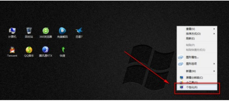 1,桌面空白处右键选择“个性化”