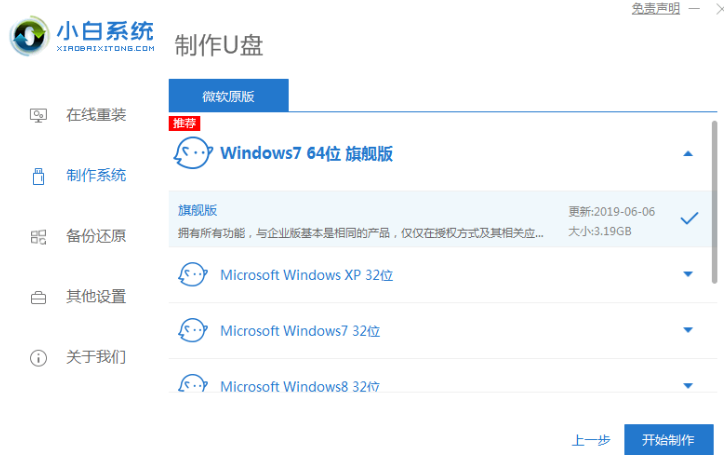 1、打开小白一键重装系统点击制作系统,点击开始制作。