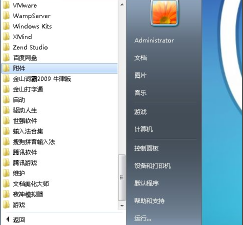 2、在所有程序中会有很多的选项,鼠标往下翻,找到附件。