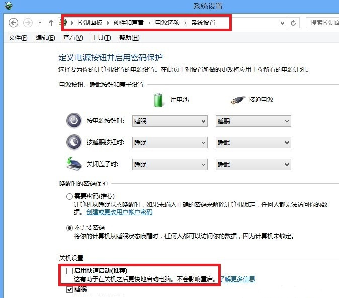 关闭快速启动方法: