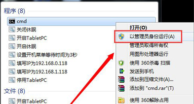 1.在开始菜单搜索cmd,右键以“管理员身份”运行。