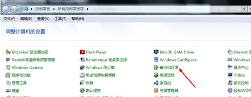 1.我们需要在电脑桌面当中找到左侧的开始菜单图标,单击进入,在菜单栏中寻找一个叫控制面板的选项,进入该页面当中你会看到一个叫备份和还原系统的按钮。