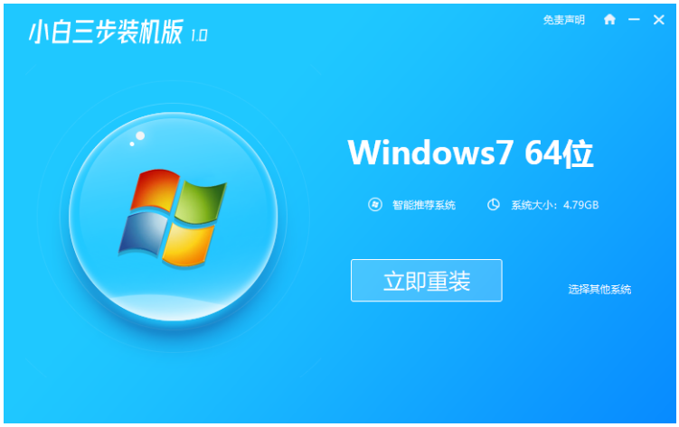 1、在使用之前我们退出安全软件,然后双击运行桌面当中的小白三步装机版软件,在主页面中选择想重装的系统,完成后点击立即重装选项。