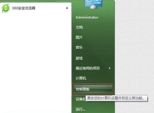 1.在win7中打开开始菜单,然后找到控制面板选项并打开。
