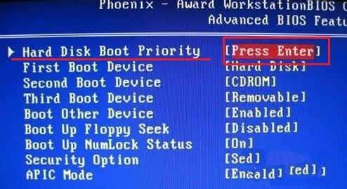 光标移到【Hard Disk Boot Priority】后面的【Press Enter】---回车