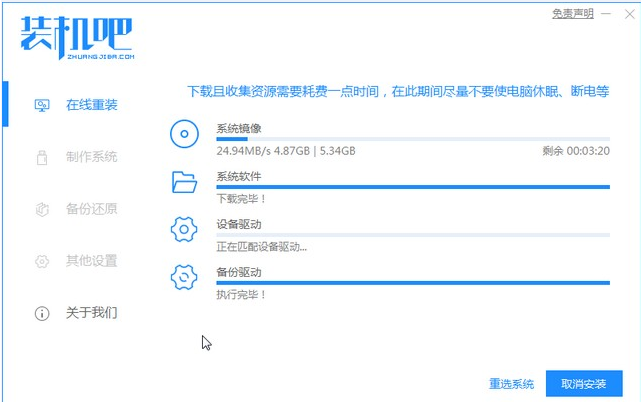 1、电脑安装好装机吧一键重装系统软件并打开,在这就可以下载安装win7的64位系统