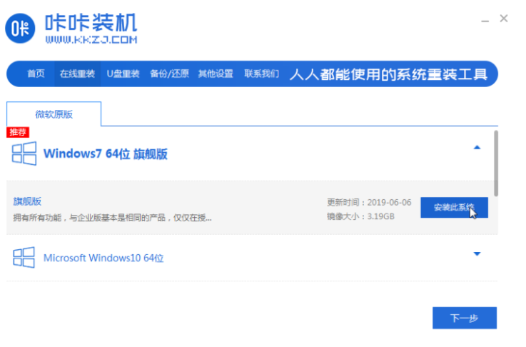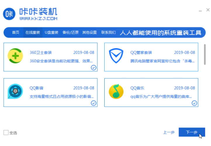 1.笔记本电脑重新装回win7系统呢?首先打开电脑浏览器搜索下载咔咔安装软件,打开咔咔安装点击在线重新安装系统。