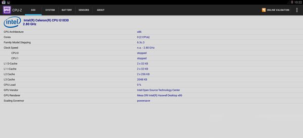 安装Android版的CPU-Z,能正常识别Intel B85、G1830内核硬件信息。
