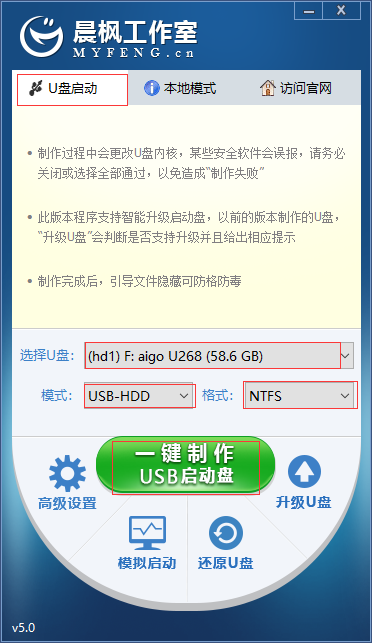 3、软件版本:晨枫u盘启动工具5.0