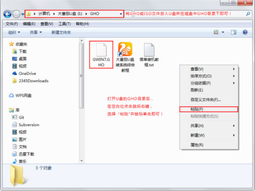 注意:有时制作完成后,打开U盘找不到Gho目录或提示格式化U盘,点击查看==》找不到Gho目录或者U盘提示需要格式化的解决方法!将下载好的系统镜像包复制到U盘Gho文件夹内,如下图所示: