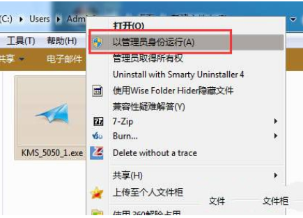 2、打开解压好的小马win7激活系统工具exe主程序,鼠标右键以管理员身份运行。