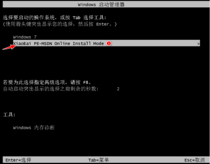 步骤五:在电脑进入的页面中选择进入到小白的PE系统当中。