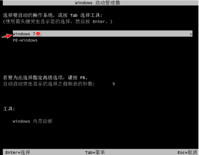 步骤七:在电脑重启之后我们需要按下Win7系统进入。
