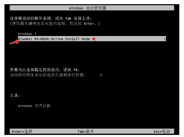 5、选择 XiaoBai PE-MSDN Online Install Mode 菜单进入pe。