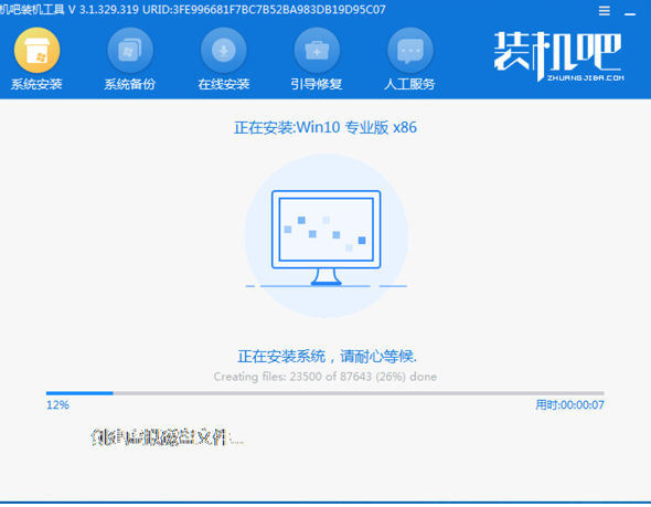 1、首先下载安装装机吧工具软件,插入U盘,选择点击“制作系统”。