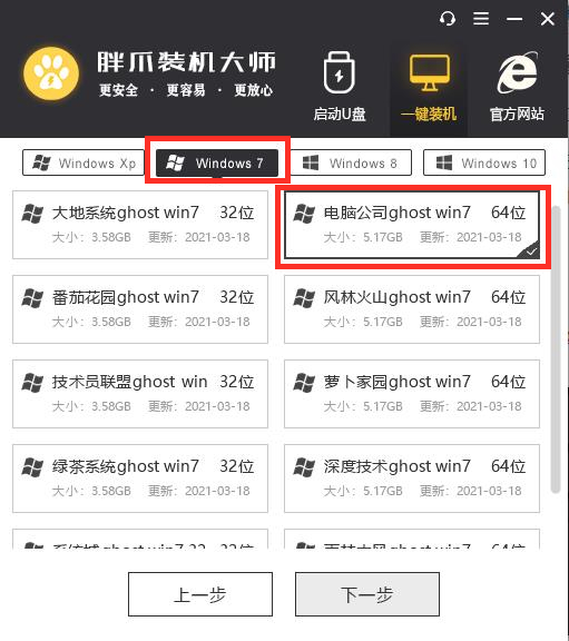 5.选择我们自己需要重装的win7系统,点击下一步。