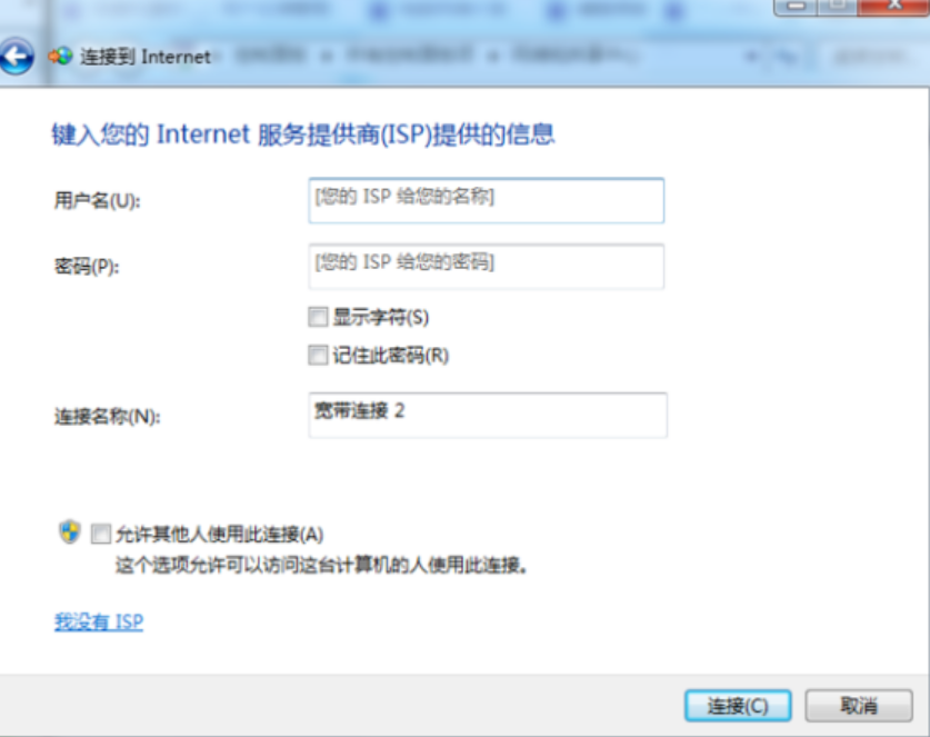 6、在窗口中输入宽带账号密码,点击“连接”就可以了。