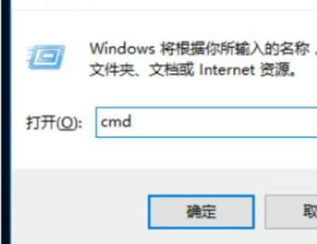 2、如果可以进入安全模式,按下win+ R 键,输入cmd, 点击确定。