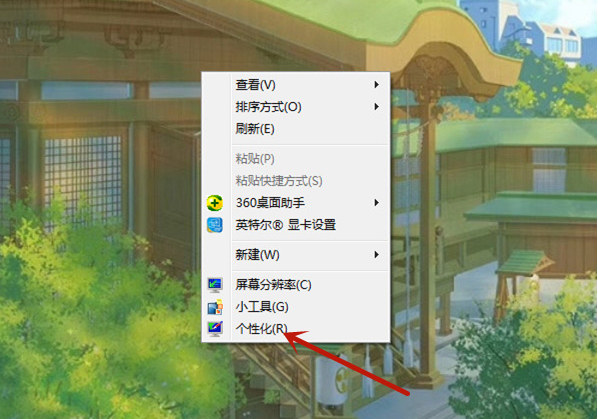 1、鼠标鼠标右击windows7系统桌面,点击个性化。