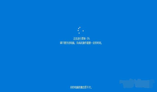 9、安装完成后,系统会自动重启,显示“正在进行更新”的状态,这段时间的长短跟电脑硬件配置有关配置低速度慢一点,配置高速度就快一点
