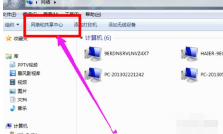 2.然后打开“网络和共享中心”