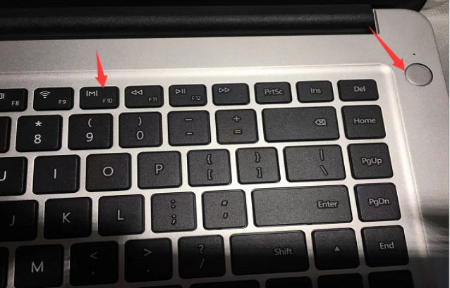 1、为华为笔记本连接电源适配器,按开机键后连续或者长按按F10
