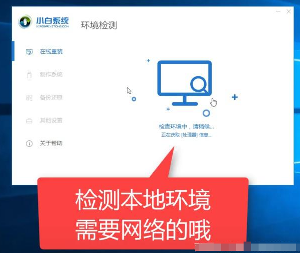 1.双击打开我们下载好的小白一键重装系统,然后检查本地环境,如下图所示: