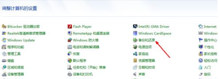 1、进入到开始菜单的页面,我们找到【控制面板】选项,在控制面板的主页当中点击进入【备份和还原】功能。
