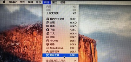 1、首先我们在桌面顶部点击【前往】找到【实用工具】。
