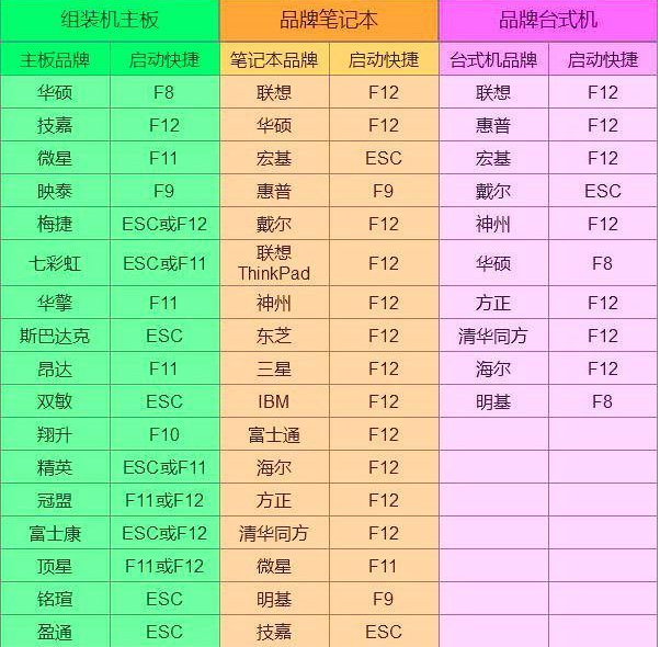 4.进入电脑后,按F12,进入BIOS调整开机顺序,不同电脑的快捷键是不一样的,下面几种是较为广泛使用品牌的快捷键。