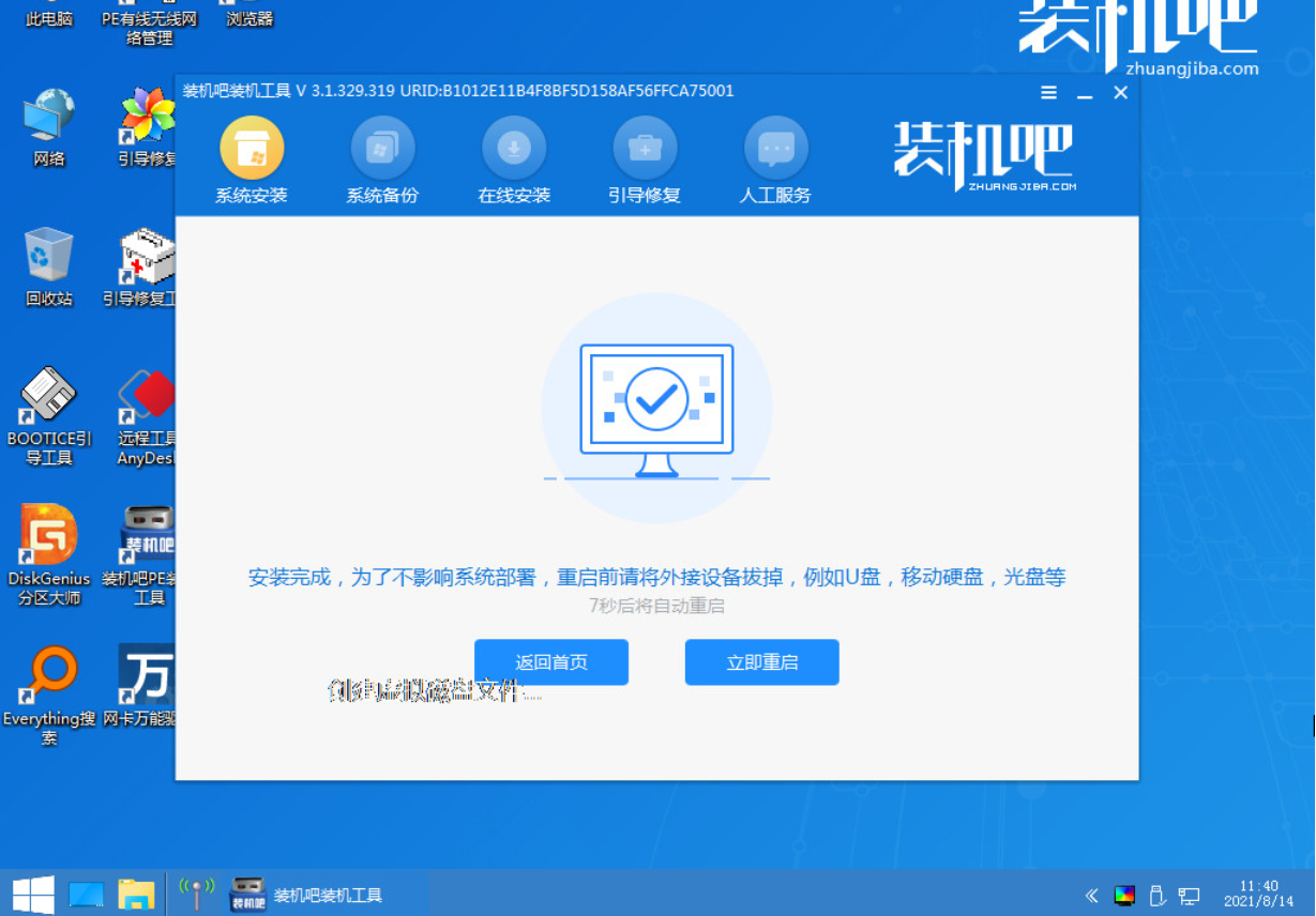 4、重启电脑,我们选择第二个进入装机吧的pe系统中。