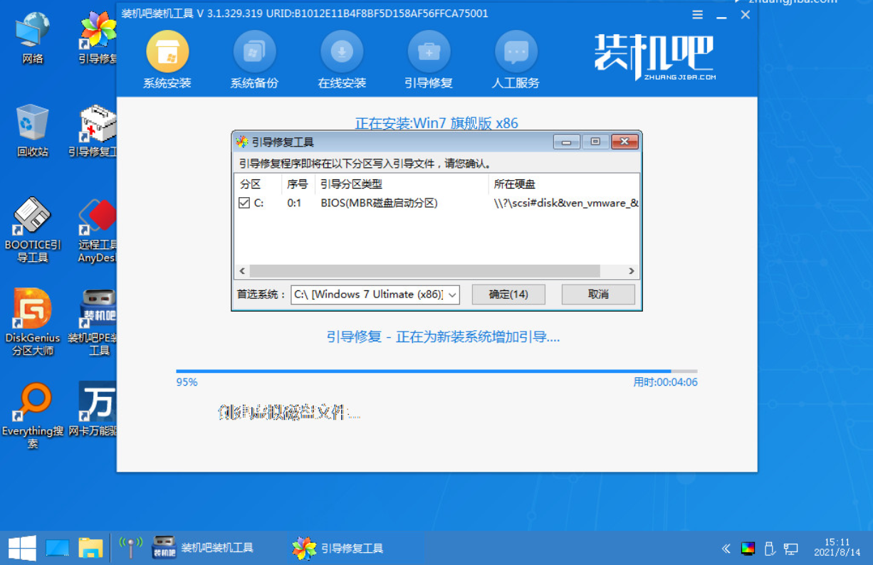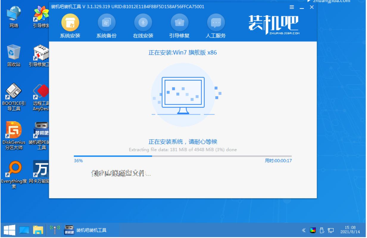 6、在电脑的pe界面中打开装机吧工具然后后继续进行系统的安装。