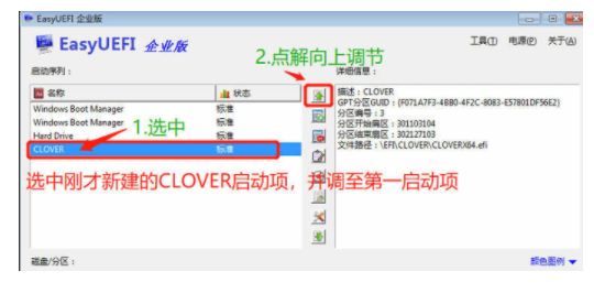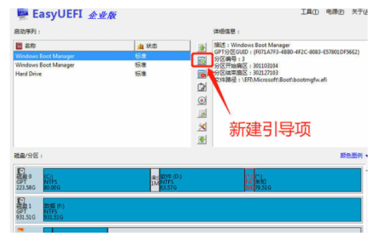 2、打开EasyUEFI引导工具,选择管理EFI启动项,然后在启动序列下点击新建引导项
