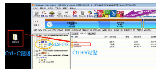 1、将之前拷贝的clover文件夹复制到硬盘的ESP分区