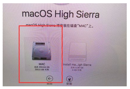 6、关闭“磁盘工具”,开始安装苹果系统,选择刚刚抹掉的那个盘,等待重启电脑
