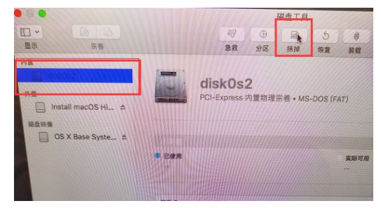 5、找到刚刚自己新建的安装盘,输入一个名称,抹掉格式一定要选择APFS