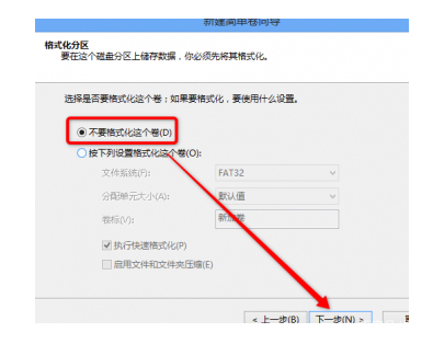 2、之后新建简单卷。根据安装向导进行操作即可,选择项可根据下图进行操作