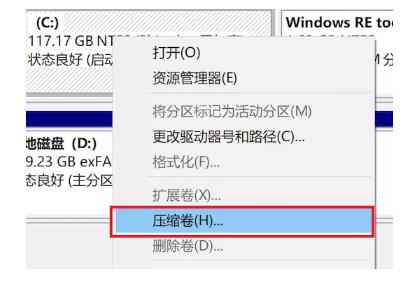 1、分区给系统盘,最好30G以上。(如果你的电脑是MBR分区格式,那么就需要再找一个U盘,下载小白一键重装系统,将U盘制作为U盘启动盘,将BIOS设置为uefi启动引导,磁盘分区设置为gpt格式。)右击计算机图标>>管理>>磁盘管理,右击第一个磁盘,选择压缩卷
