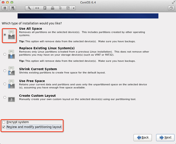 12、调整硬盘相关的分区,一定要按照指示来,并且一定要有/home这个分区。