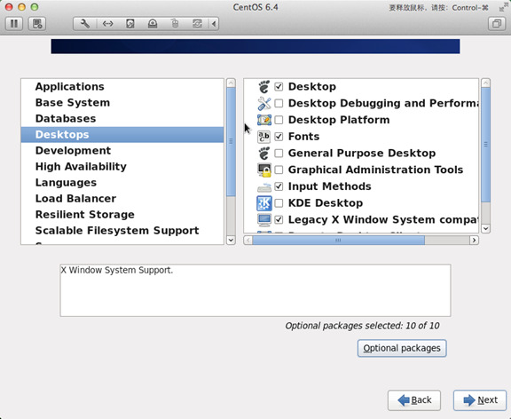 15、之后取消“Applications”、“Base System”、“Servers”中的所有选项。并且将“Desktops”中的“Desktop Debugging and Performance Tools”、“Desktop Platform”、“Remote Desktop Clients”取消。而在“Input Methods”除了“ibus-pinyin-1.3.8-1.el6.x86_64”,其余的全部取消。
