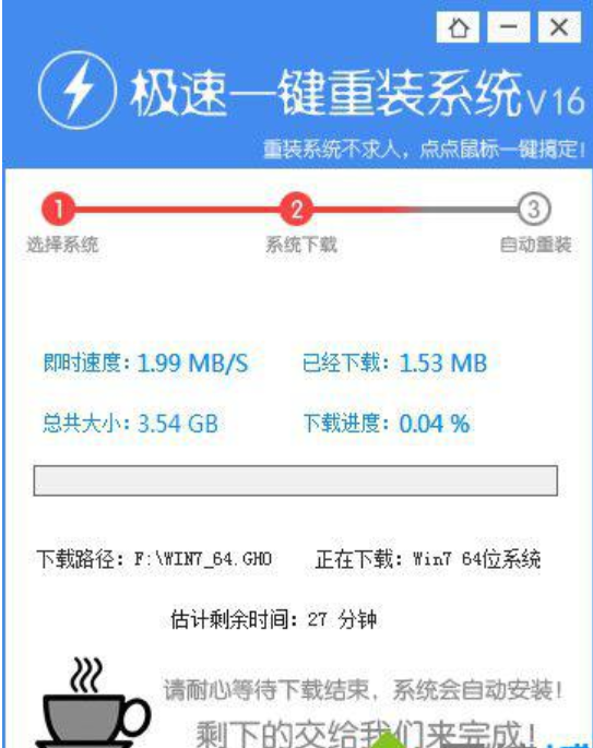 3、之后进入系统镜像下载过程,这时候你能做的只有等待,系统在下载完成后会自动安装系统;