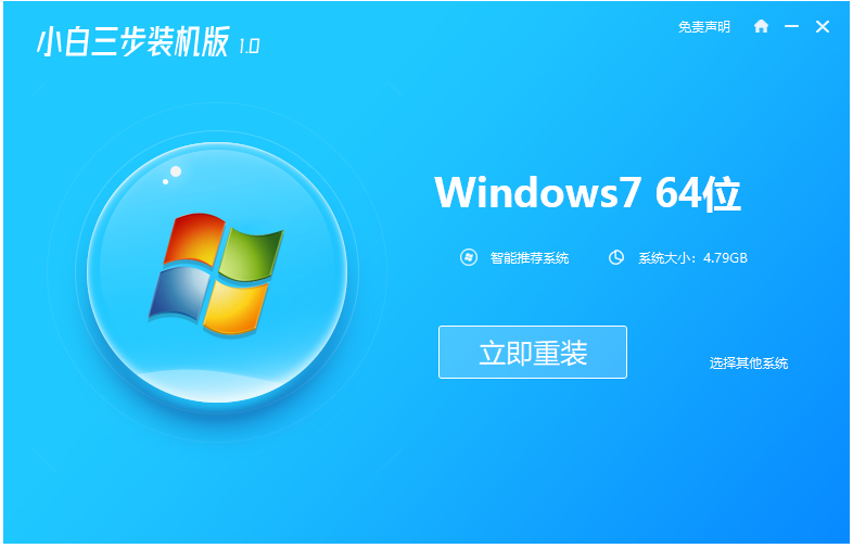 2、第二名小白三步装机版工具,它是小白一键重装官网推出的超简单的系统重装工具,它可以实现三步立马重装。主要特点有自动检测匹配系统,一键重装,支持XP/Win7/Win8/Win10以及64位和32位系统。为用户提供了最简单的系统重装解决方案。